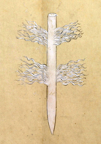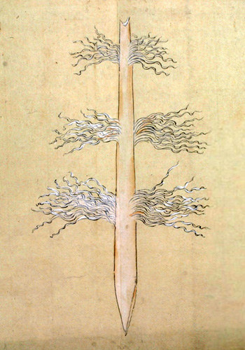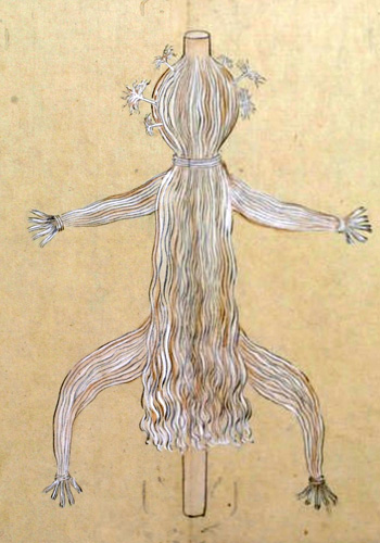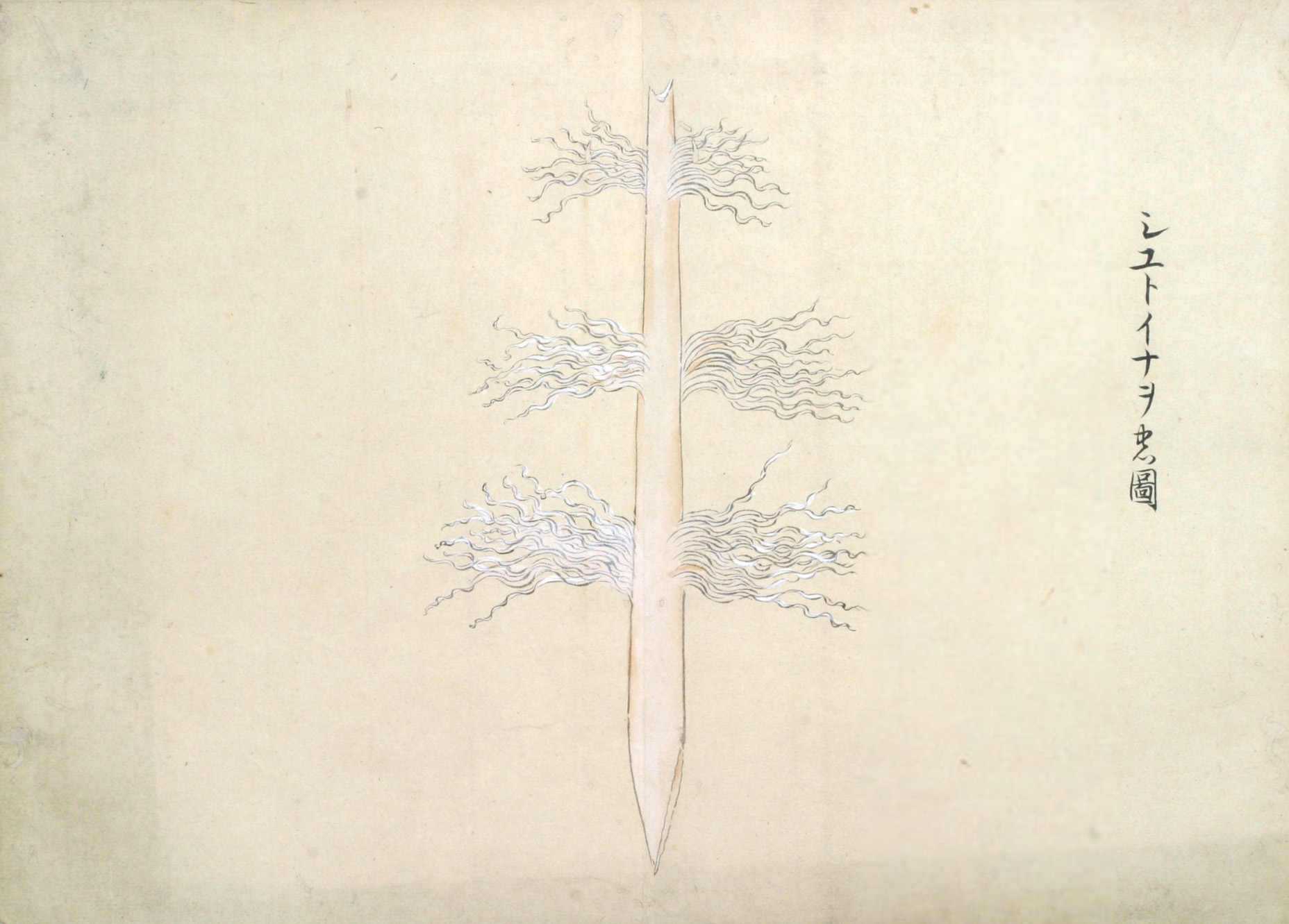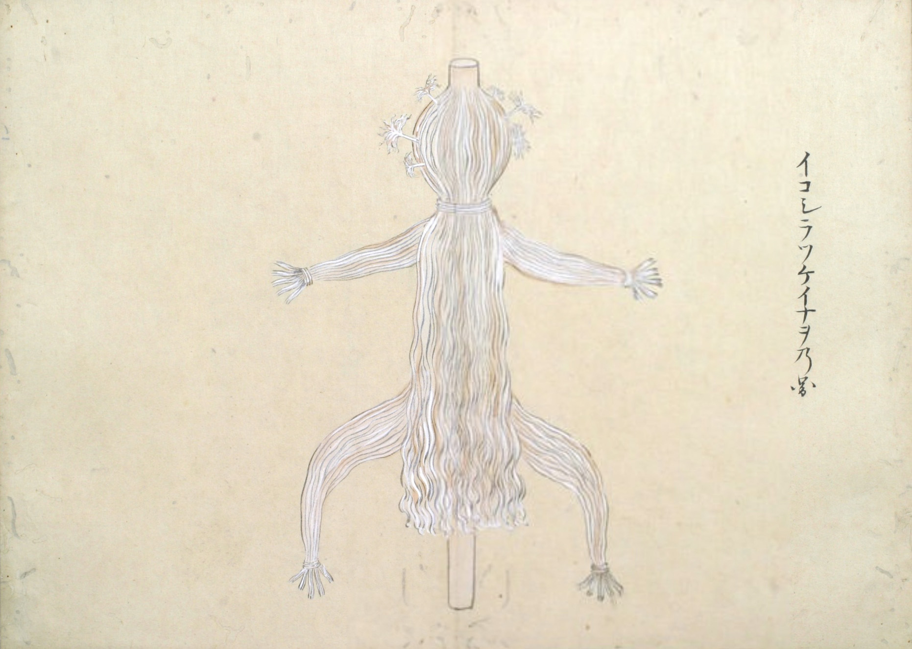 又ピンネアペシヤマウシイナヲと云事あり、この二はかならず火の神を祭るに用ゆるイナヲにして、男女のわかちあるに寄て、其かたち(かわ)れるなり。