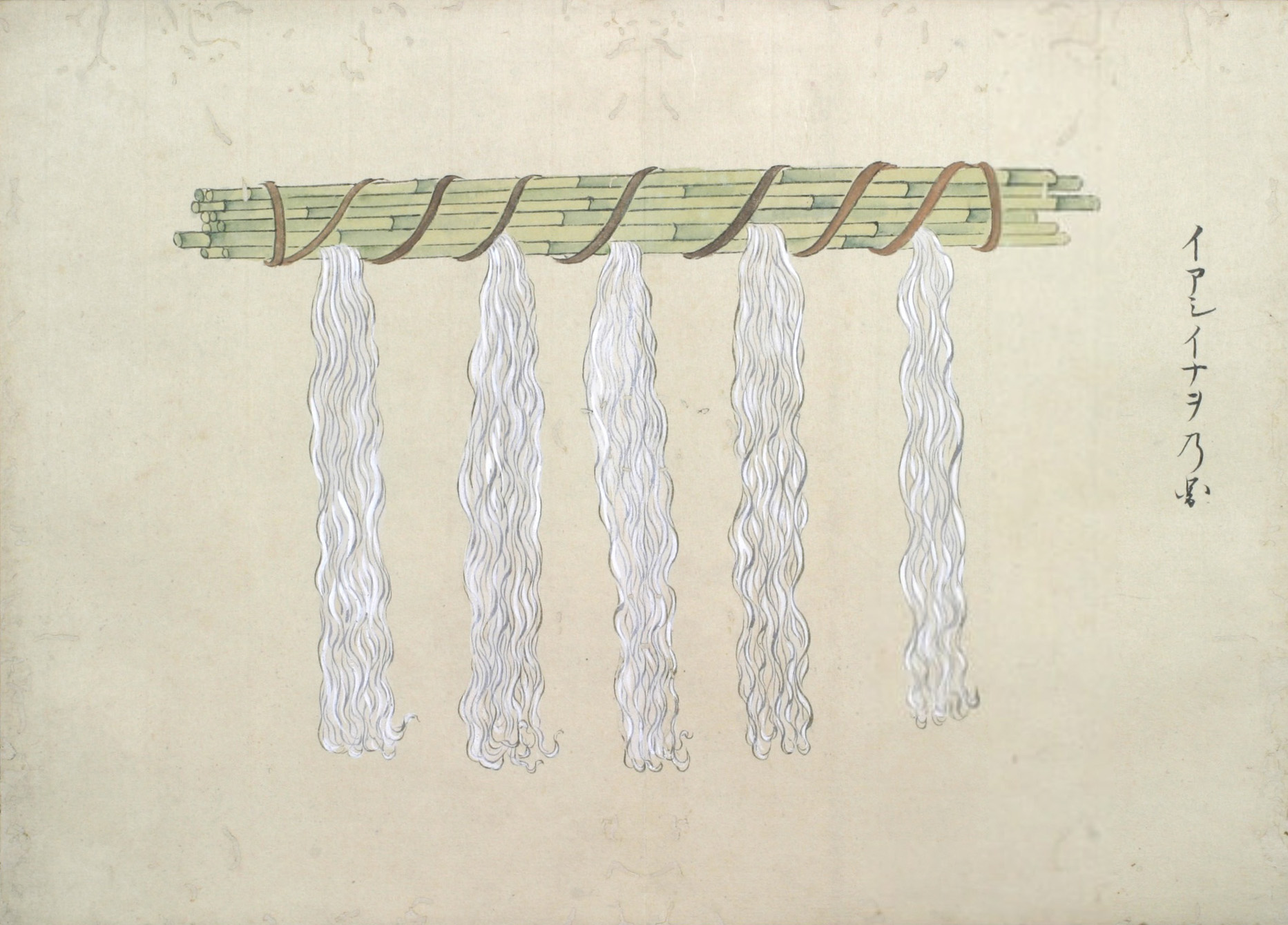 一、(イアシイナヲ)。イアシは夷人の住居の内に捧げ置イナヲと云ことなり。