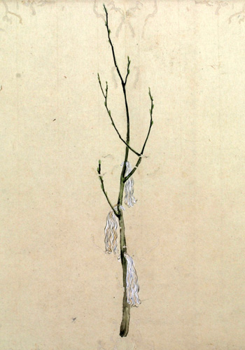 其とき此イナヲを小枝にゆひ立て奉る事なり。