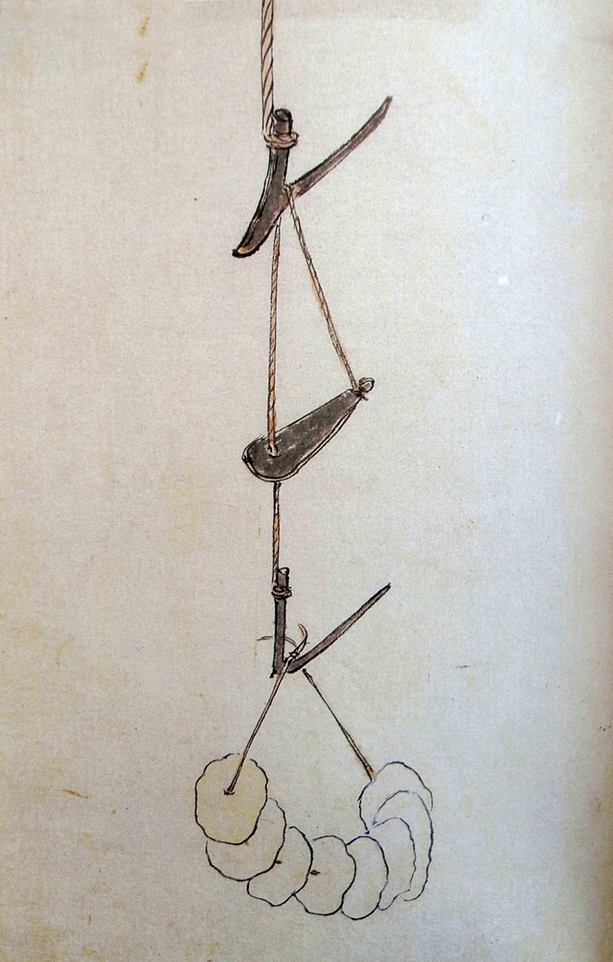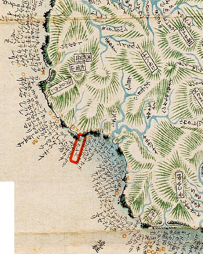 いかがしたりけん、ものあらがひをしていかりたち、チヤウカヰ、イチヤウカヰ (吾等足下) と、きいしらぬいさかひの声いやまさりて、すまひのごとく頭をおさへ、耳環をつかみ、耳たびもちぎれ、カモカモもうちやり、外器の酒もこぼれたり。