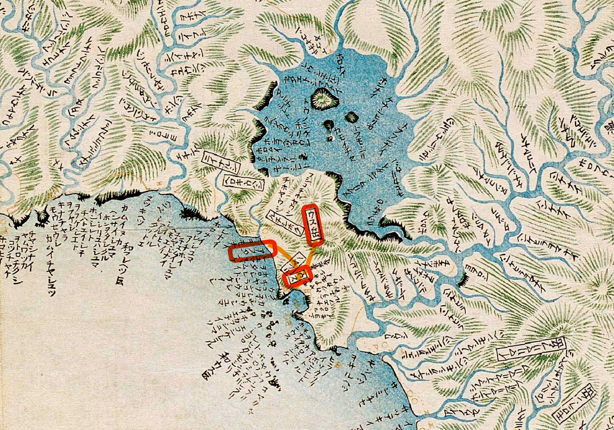天註──魚肚はユウペツといふコタンより配る、シャモ是を蝶鮫とてもて渡れり。比魚の腹より出るといふ。ユウペとはユウペツの短語ならんか、シャモのニペちふものはグウグウユウペの転語にてや〕