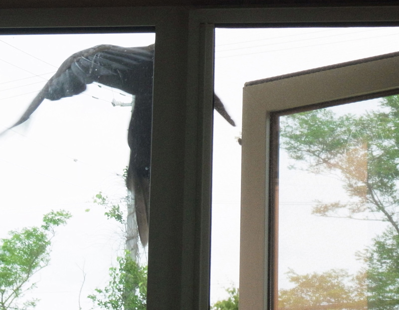 ♀ : 窓枠にとまって食べ物をねだる