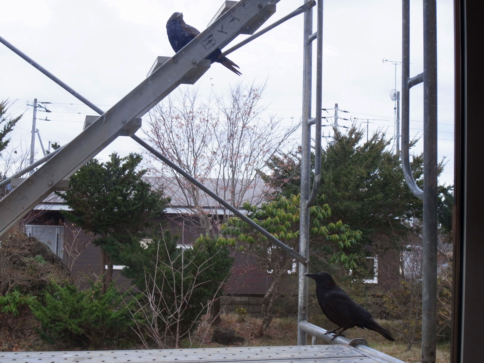 工事の足場から室内を窺う