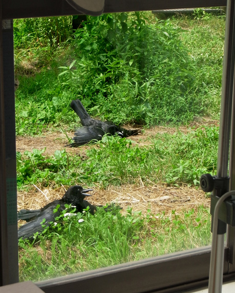 口が開いているのは「喘ぎ呼吸」というもので,これで体温を逃がしている。