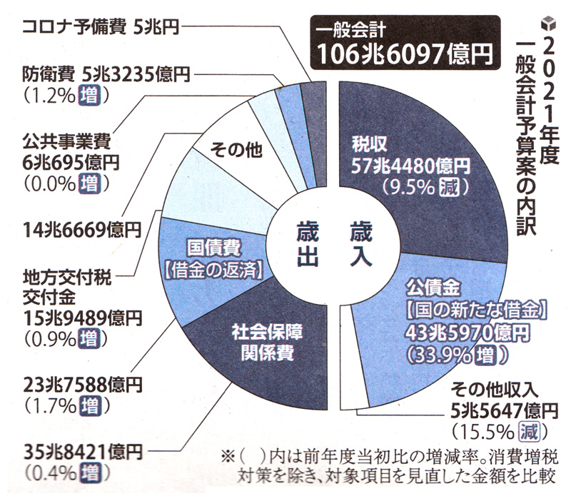 政府は21日、2021年度予算案を閣議決定した。