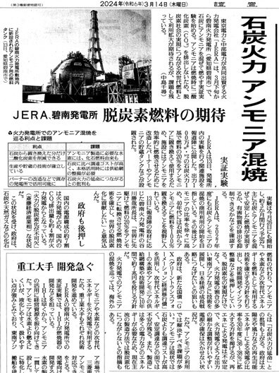 ここに「400–600 °C、200–1000 atm の超臨界流体状態」が出てくるが,これはどうやって実現しているのか? もとをたどれば化石燃料になるエネルギーを消費しているのである。 しっかり化石燃料を燃やし,CO2 を排出しているわけである。 窒素・水素の製造工場も,消費しているエネルギーは結局化石燃料由来である。 石炭をアンモニアに換えることは,石炭を無くした分だけアンモニアを増産することである。 そして,二重手間をやっている分,CO2 排出は却って増えることになる。 しかしひとは,石炭火力発電所は石炭をアンモニアに換えれば脱炭素になると思う。 ひとは,CO2 排出が自分のところから無くなれば,それで「脱炭素」なのである。 実際,このアンモニア製造の CO2 排出は,他のところ (外国) でやることになる。