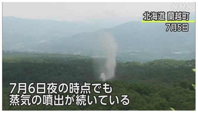 6月29日、北海道蘭越町湯里の山中にある地熱発電に向けた資源量調査の掘削現場で数十メートルの高さまで蒸気が噴出し、6日夜の時点でも噴出が続いています。