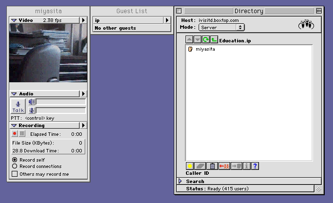 (まだ自分しか入っていないので,Guest List は空になっている。──他の人が入ってくると,Guest List に表示され,その人の画像が表示される。)