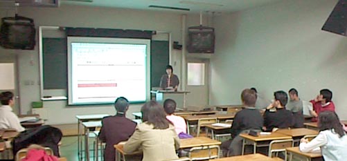 国際化時代ですから、あたりまえのこととして、英語からは逃げられません。また、今日言う「国際化」は情報化にともなうグローバル化と一体ですから、情報リテラシーがひ弱なのもダメです。(だいいち、今日外国とのコミュニケーションは、文書にしても画像にしてもインターネットです。電話もじきインターネット電話になります。)したがって、英語と情報の能力を徹底的に鍛えることを、大学教育の中に据えなければなりません。 岩見沢校の学生の潜在能力は、かなり高いものがあります。ところが、本人たちはこれを自覚していない。そこで、彼らに自分の潜在能力に気づかさせ、自信、向上心およびチャレンジ精神を強くもたせることが、わたしたち大学教官の重要な責務ということになります。 潜在能力を顕在化するには、教育は「きつい」必要があります。実際、人間の脳や身体は横着にできていて、「死ぬ目」に遭うところまで行ってやっと自分の組織改造に向かうようになるという感じです。また、「きつい」と学生は「いや」になるかというと、それは違います。学習や仕事というのは、本格化・本物化してはじめておもしろくなり達成感へと変わるものです。 こんなわけで、わたしのゼミ生 (数学教育) に対しては、「国際化時代」を意識したいろいろな「きつい課題」をこなしてもらっています。もっとも、この方法は、最近になってやっと形になってきました。何がこの間変わったかというと、情報関連の環境です。これの充実によって、やりたいことがやっと最近できるようになりました。 うちのゼミでの「修行」項目は、企画、実行、達成 (結果のアウトプット)、情報コンテンツの制作と発信、プレゼンテーション、英語です。実際、これらは国際化時代に生きるための力です。 これらが総合されるようにする課題の一つとして、例えば、「外国からの来訪者に対する英語プレゼンテーション」を課すというのがあります。本校には、調査研究の目的で外国から教育研究者の訪れることがよくありますが、この機会を使わせてもらいます。学生は、英語でディジタルプレゼンテーションを行います。コンテンツは、ホームページベースで作成します。コンテンツ作成では、コンピュータ・グラフィックスやディジタルビデオ編集を行います。ゴールが日時・相手・目的を要素に定まっており、そして下手なことはできませんから、学生はつねに責任 (プレッシャー) を感じながら向上心をもって仕事を進めることになります。 ちなみに、最近の学生は、「結果は二の次、がんばったことがだいじ」に慣らされ、自らを甘やかす傾向があります。しかし、社会に出れば結果がすべて。「がんばんなくていいから、結果出せよ」の世界です。したがって、学生時代のうちに結果に対し責務を伴う仕事の経験を積ませることは、「強い・甲斐性のある人材の育成」ではひじょうに重要です。 |