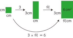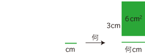 Up 面積が6cm2,タテの長さ3cm の長方形のヨコの長さは?