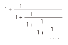 黄金比 (= (1+√5)/2) は,つぎの連分数である: