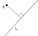 1点Pと直線Lとの距離を,PからLに下ろした垂線の長さと定義します。
