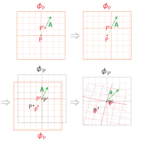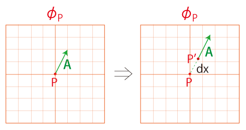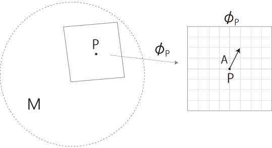 地図 \( \phi_P\) を開き,この上にベクトル \(\bf A\) を措く: