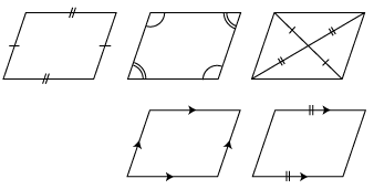 平行四辺形を特徴づける以下の(互いに同値な)条件は,それぞれ平行四辺形の「つくり方」を示したものに他なりません: