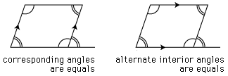さらに,隣り合う内角の和が 180 度であることから,つぎのことが導かれます: