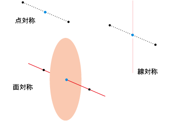したがって,「点対称」,「線対称」,「面対称」の3種類の対称関係が主題になります。