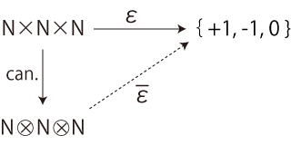 \epsilon : N \times N \times N \longrightarrow \{ +1, -1, 0 \}