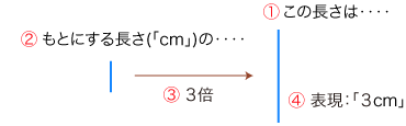 例:長さの表現「3cm」のしくみ: