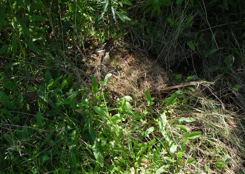 除草のとき,土中の巣の天蓋になっていた草株を,