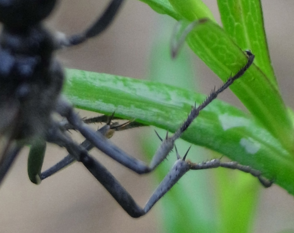 雨模様の中,ノギクの葉につかまっているところ
