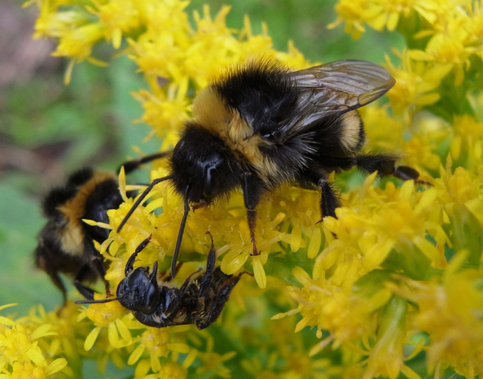 セイヨウオオマルハナバチ2匹と???バチ