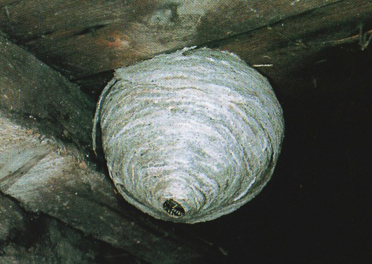攻撃性、威嚇性はあまり強くないが、働きバチの多くなる7〜8月に巣を刺激すると激しく攻撃してくる