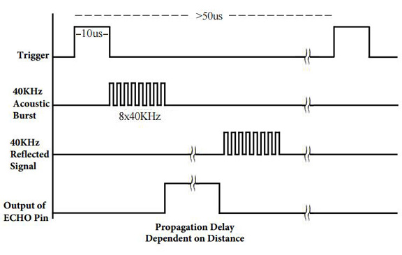 測定のトリガーは,TrigPin が SR04 の Trig に送信する 10us の High (5V)パルス。