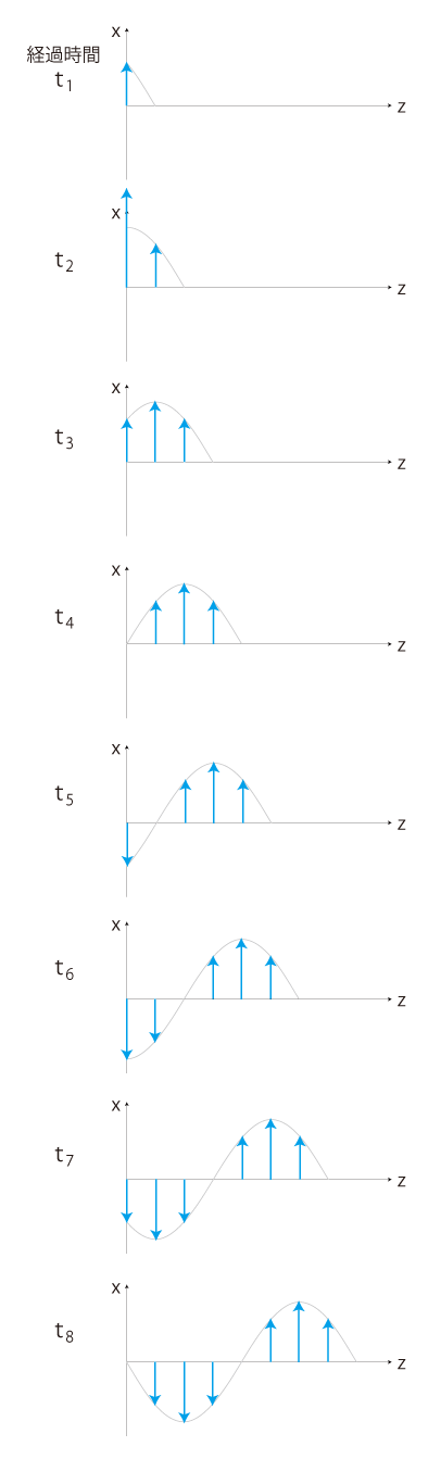 時間t固定 \[ E_x(z,\,t) = F( z - ct) \]