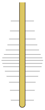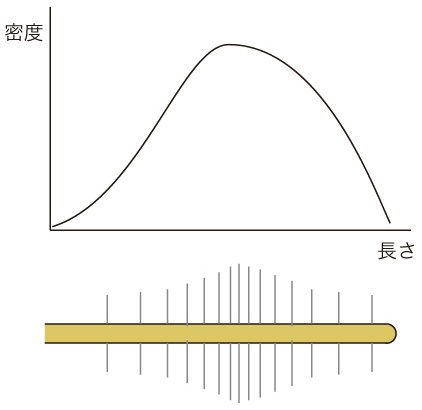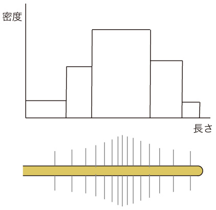 各類から代表1本をとり,これをつぎの「根元に近い方から順に切る」の出発点にする。 行った分類は,その都度記録しておく。 そして,末端枝の同形分類で終わる。 末端枝の各類の代表に対し,根毛の本数 (平均長さに換算) の分布グラフを階段関数 (ヒストグラム) でつくる: ![]() ここで各区間の根毛の本数は,区間の毛根断片の このヒストグラムから,末端枝の根毛の総数が求まる。 最後に,分類の記録を遡行することで,根毛の総数が計算できる。 極力「大雑把」を工夫しても,たいへんな作業である。 爪楊枝のスケールだったら「全体の重さ÷1本の重さ=総数」が使えるが,根毛には使えない。 もっとうまい方法といったものは存在しないので,観念して取り組むのみ。 繰り返すが,途方も無いことを観念してやろうとするのが,専門性である。 |