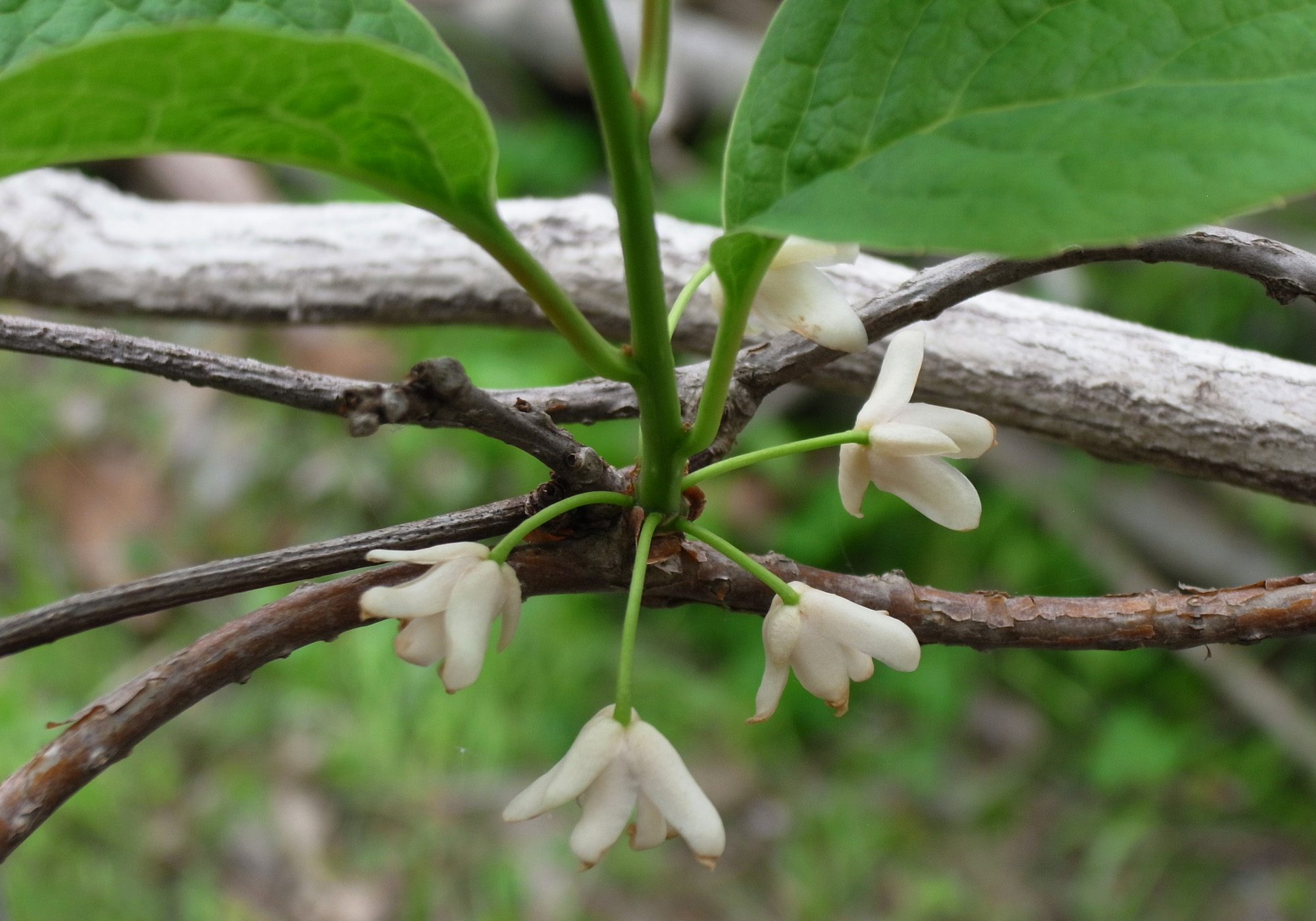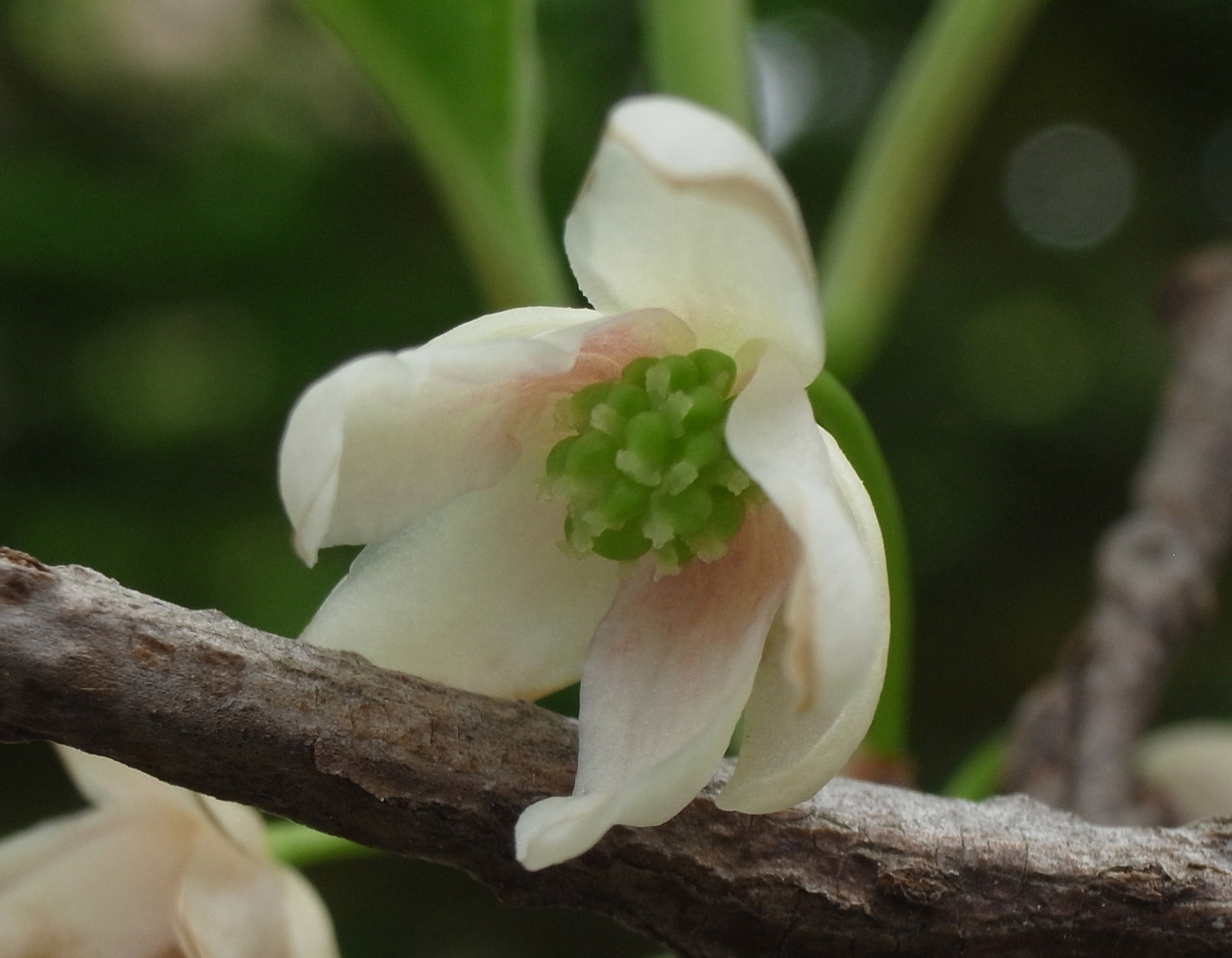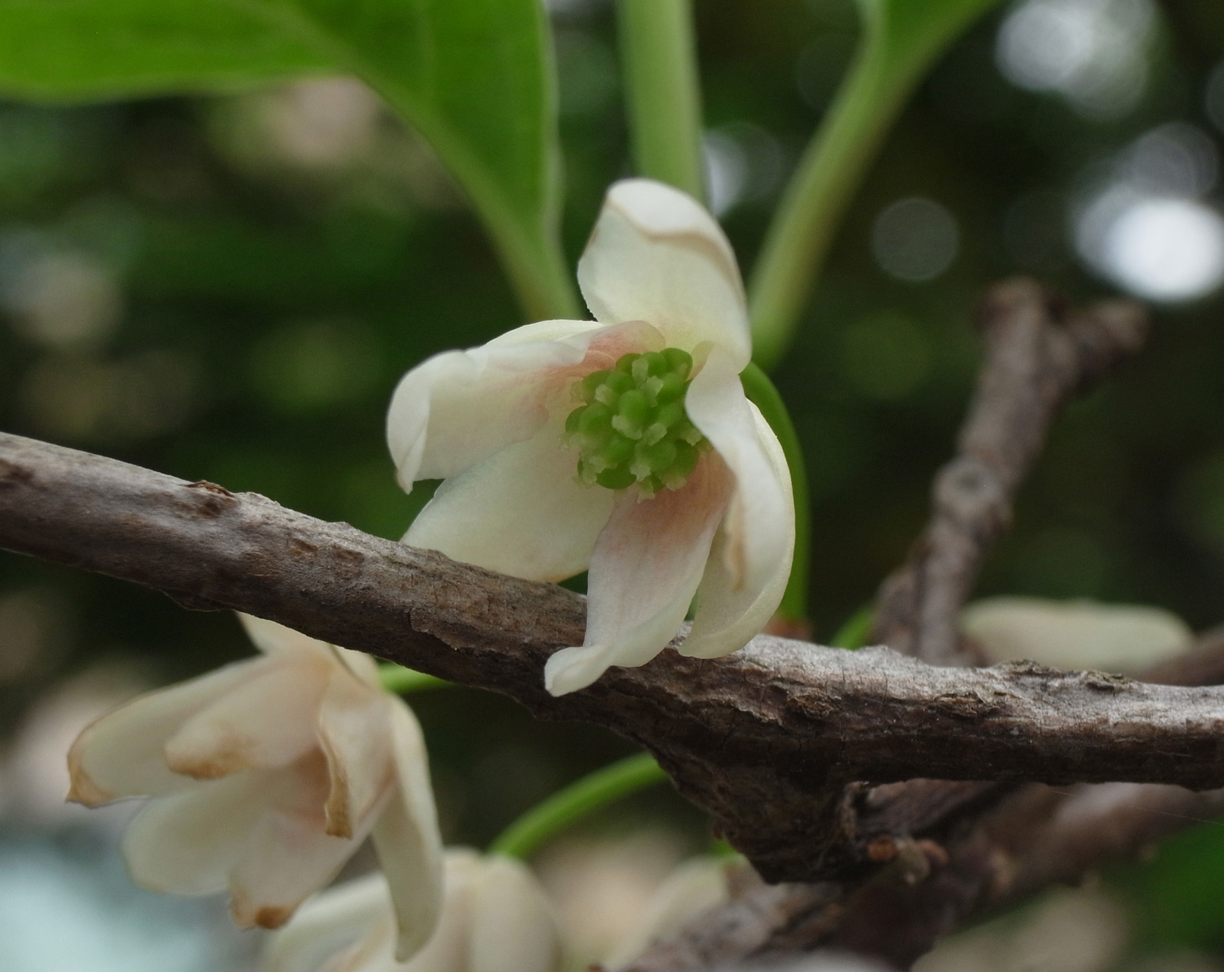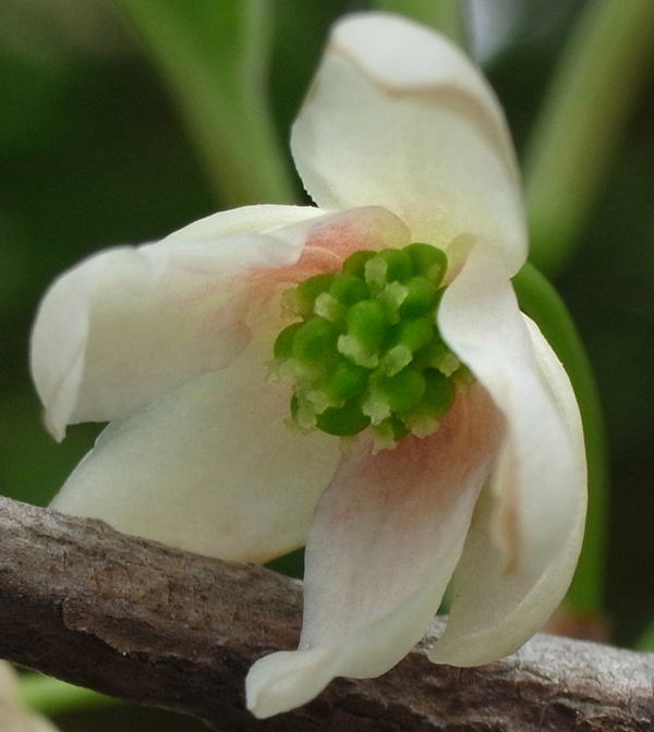 株についた花は,10個ほど? (雄花は時期を過ぎると花柄ごと枝からとれる。いまは時期が過ぎた頃なので,確かな数はわからず。)