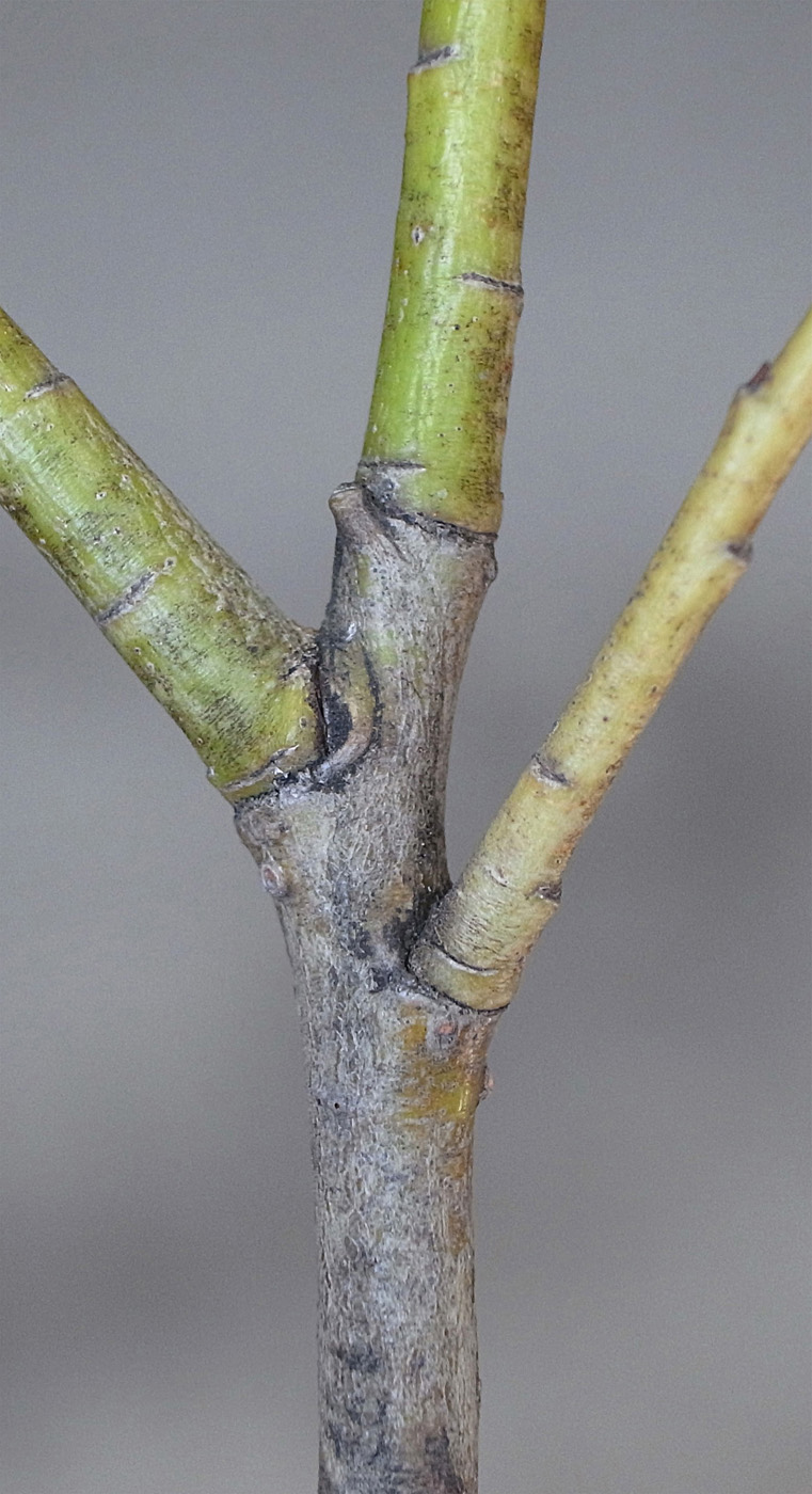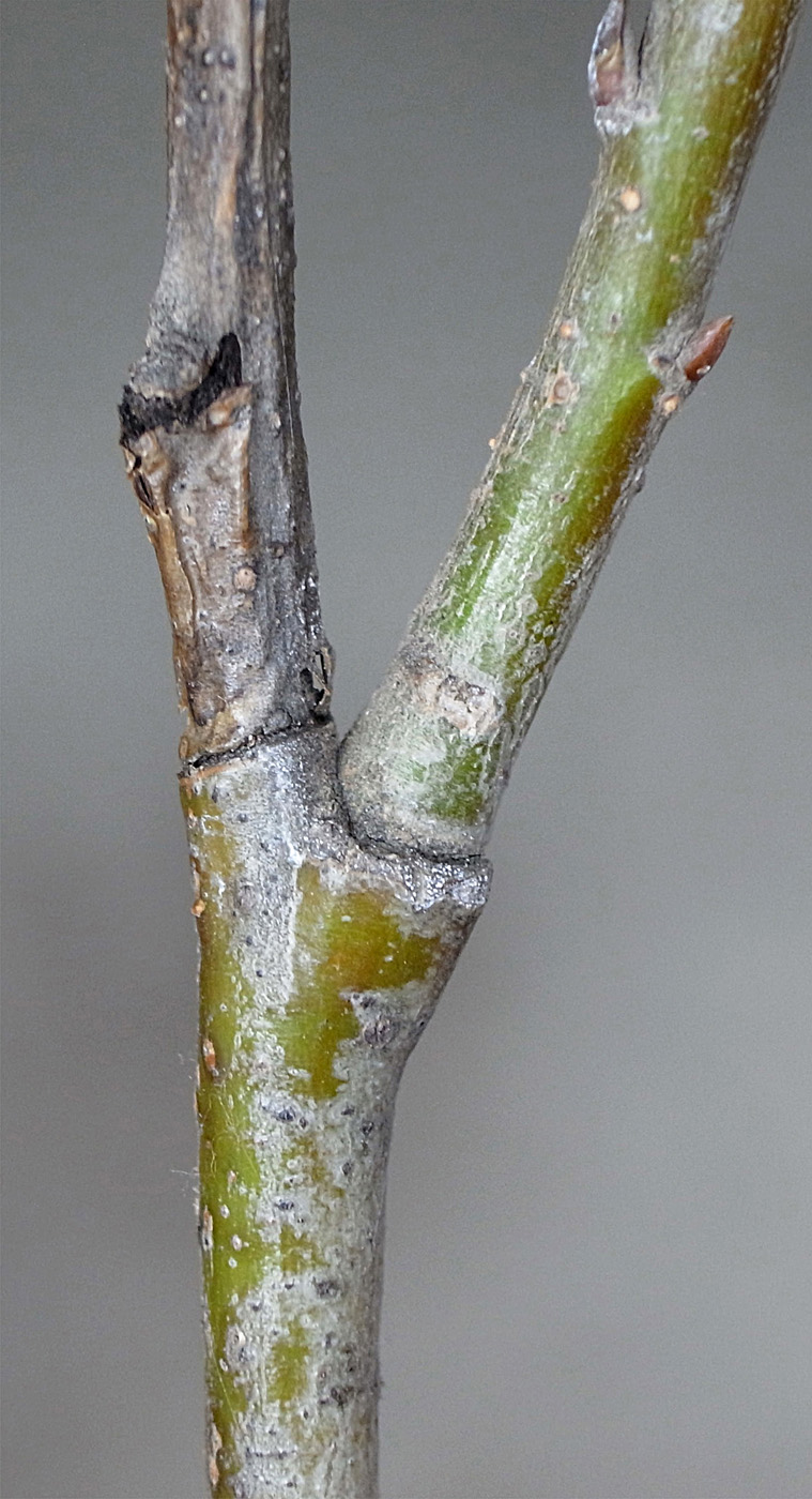 3年枝から右に分枝の前年枝が,上とつながる