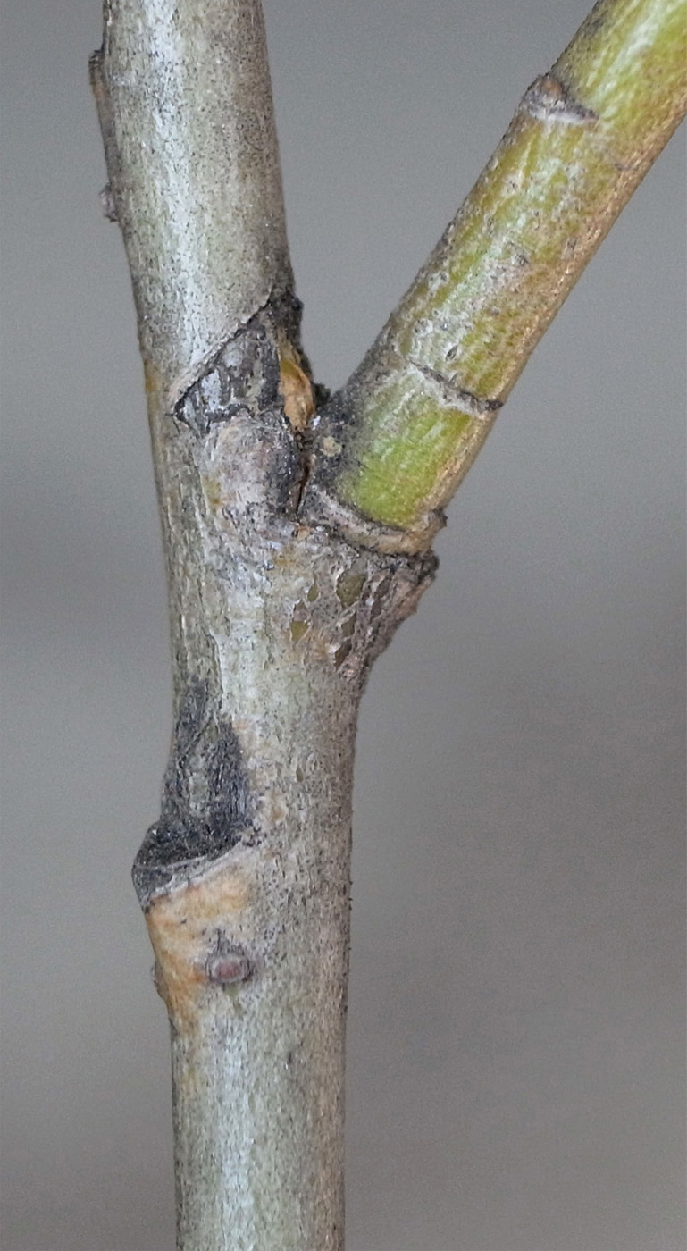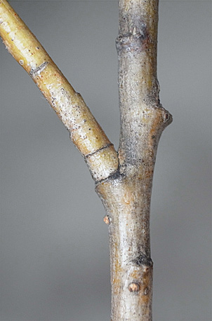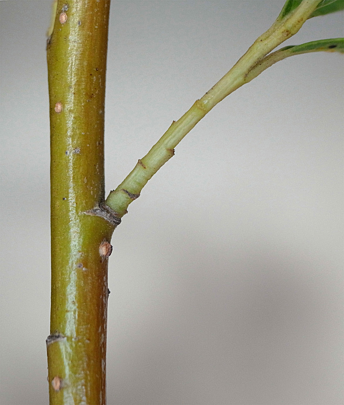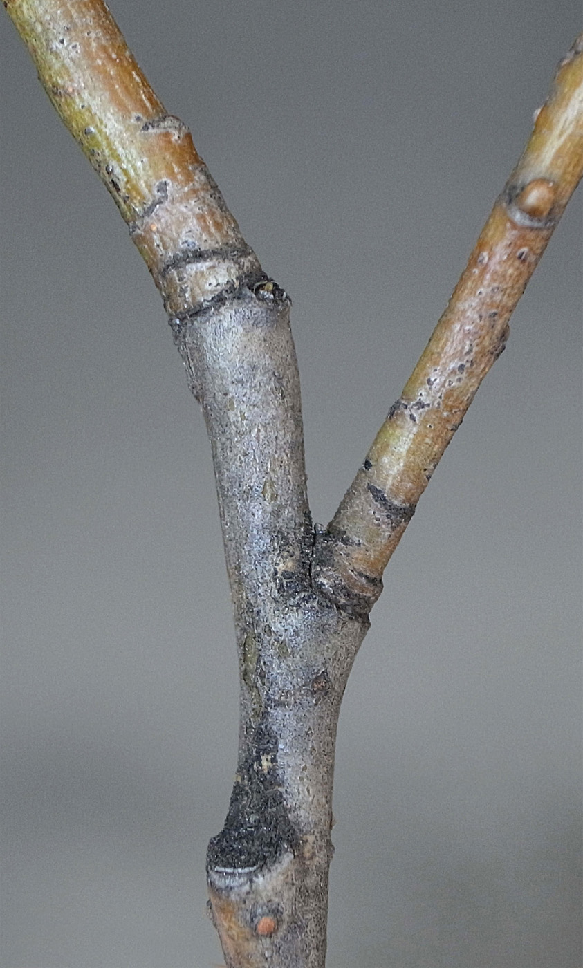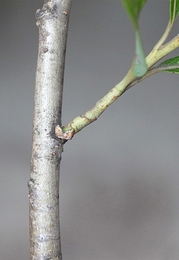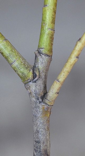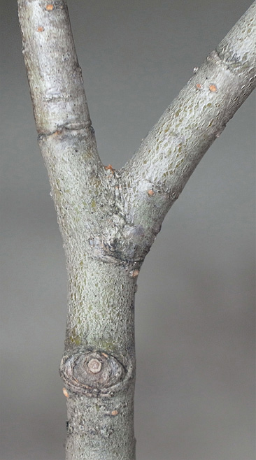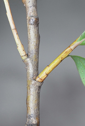 前年枝から右に分枝の当年枝が,上とつながる