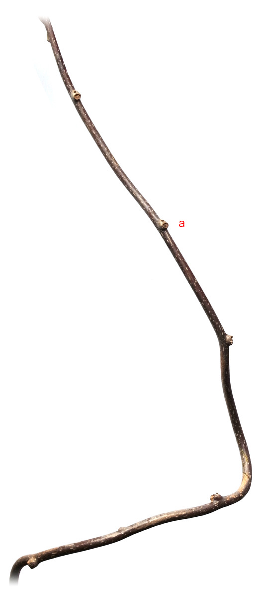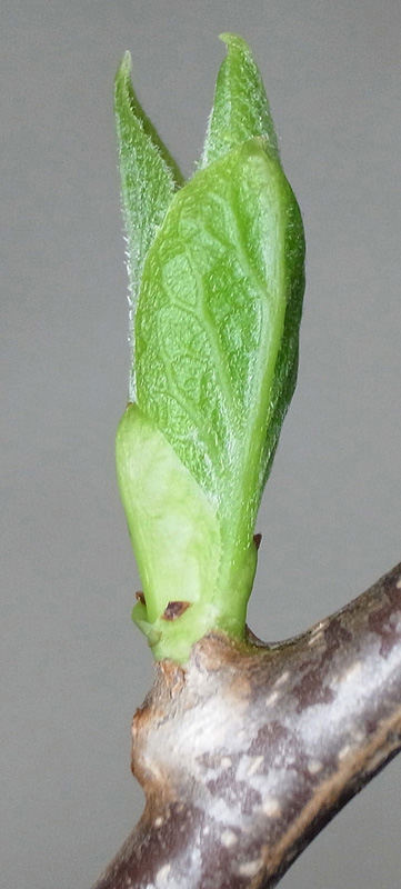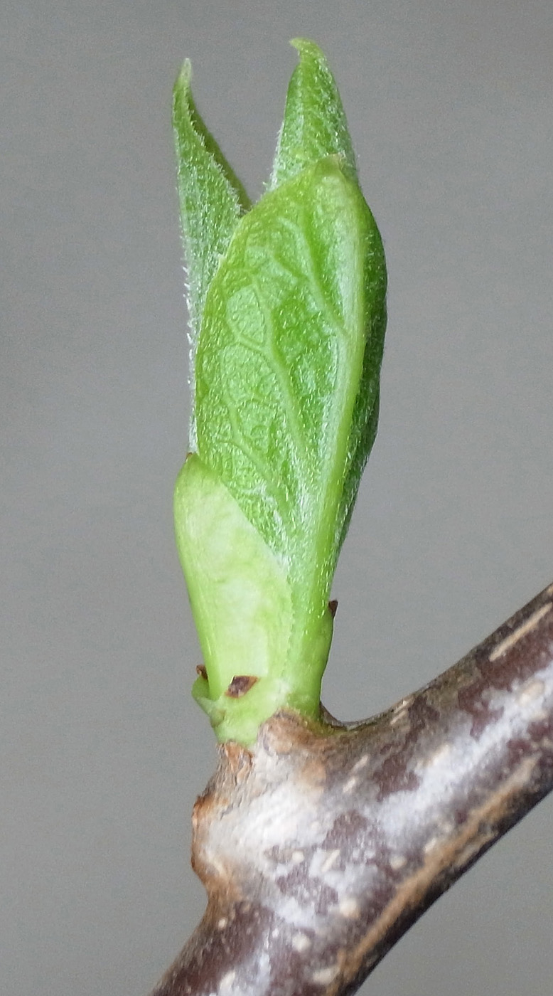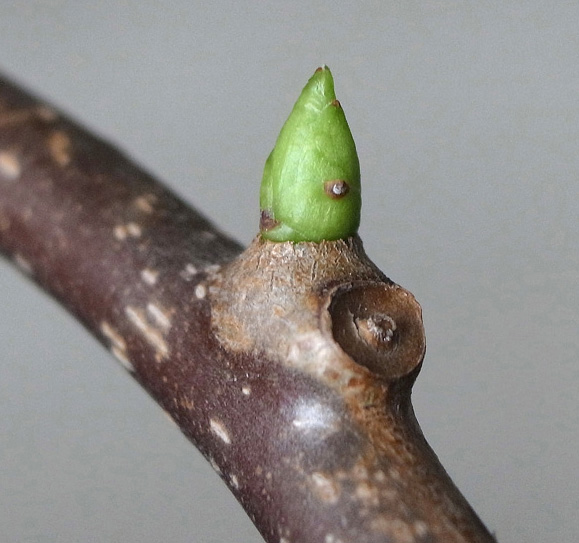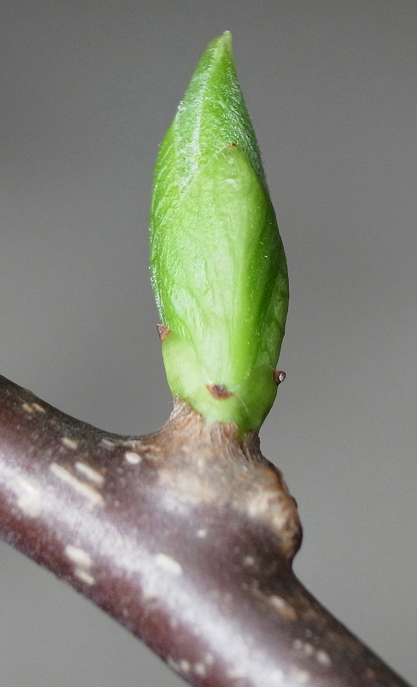 半陰芽 (冬芽の大部分が隠れ, 一部分のみ見える)