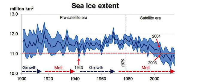 一方,北極海の氷はつぎのように増減を繰り返している: