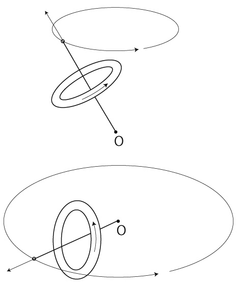 註. 角運動量の方向は, 「自転体の回転方向で右ネジが進む方向」で定義される。