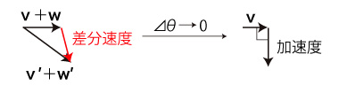 移動による回転速度の変化は,つぎの加速度になる: