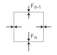 ただし横方向の力の大きさは,An の上面から下面へ Fn−1 から Fn に推移する。