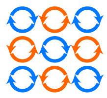 一般に,上昇流・下降流の並立の必要は,《上昇流と下降流が互いに逆方向回転の渦》を現すことになる。 ──確かに並立の合理的なソルーションになっている: