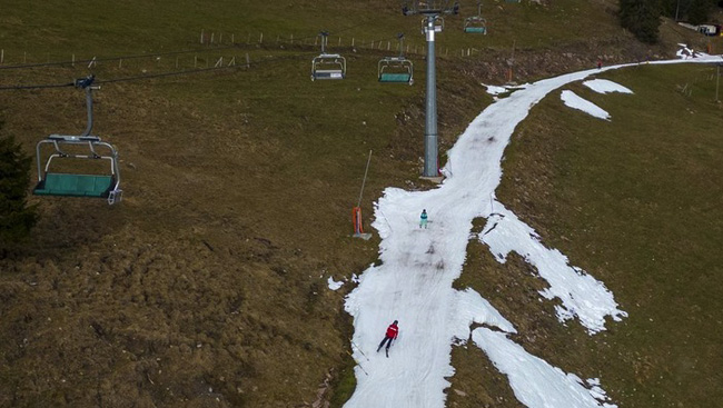 「スイスのゲレンデ、雪不足で茶色い山肌 スキーリゾートは生き残れるか」