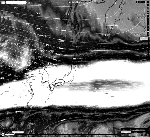 (風は等高線と平行に流れる!) なお,等高線が見やすいように,カラーをグレーに変換。 さらに,画像クリックで拡大表示へ。 |