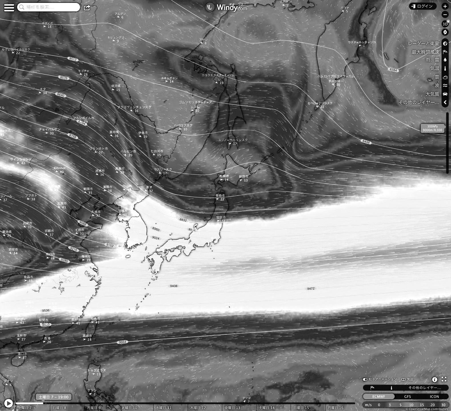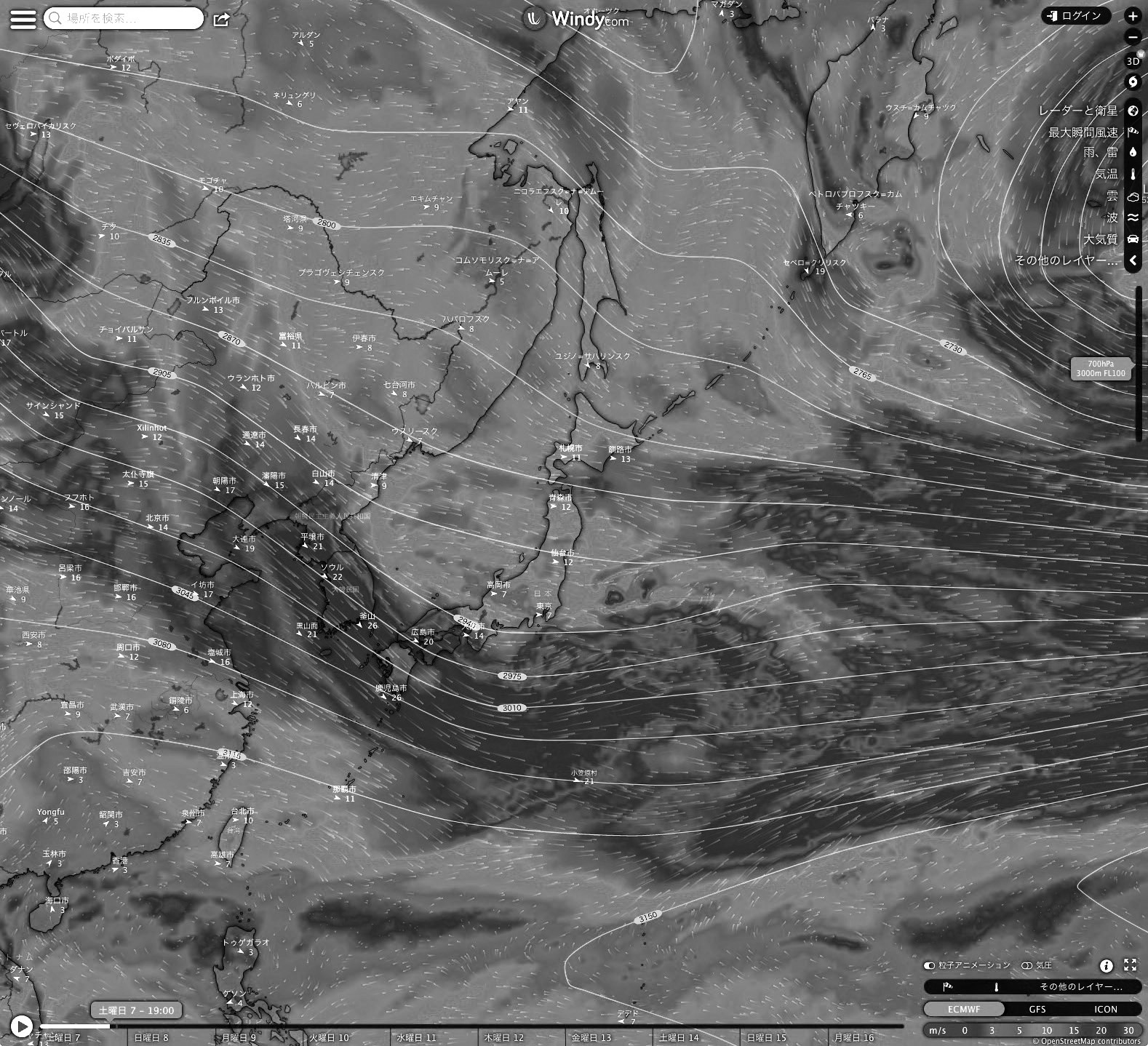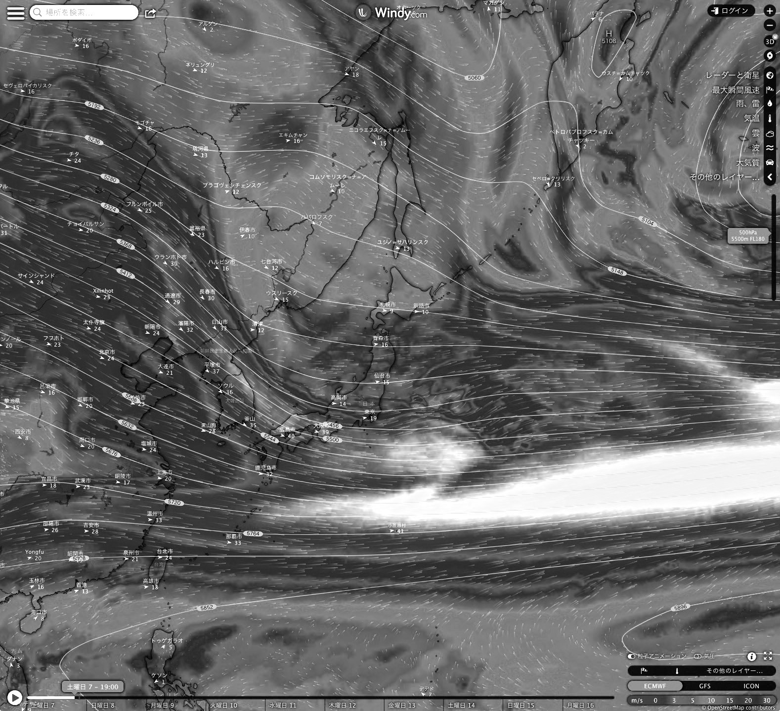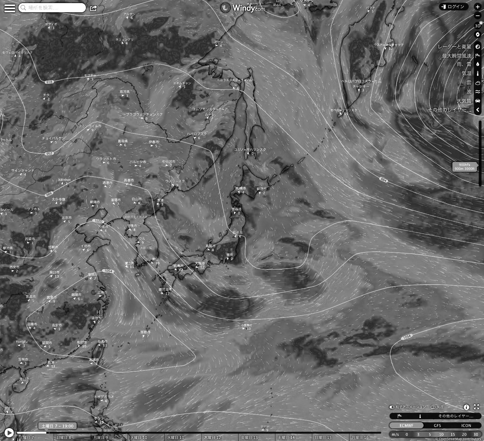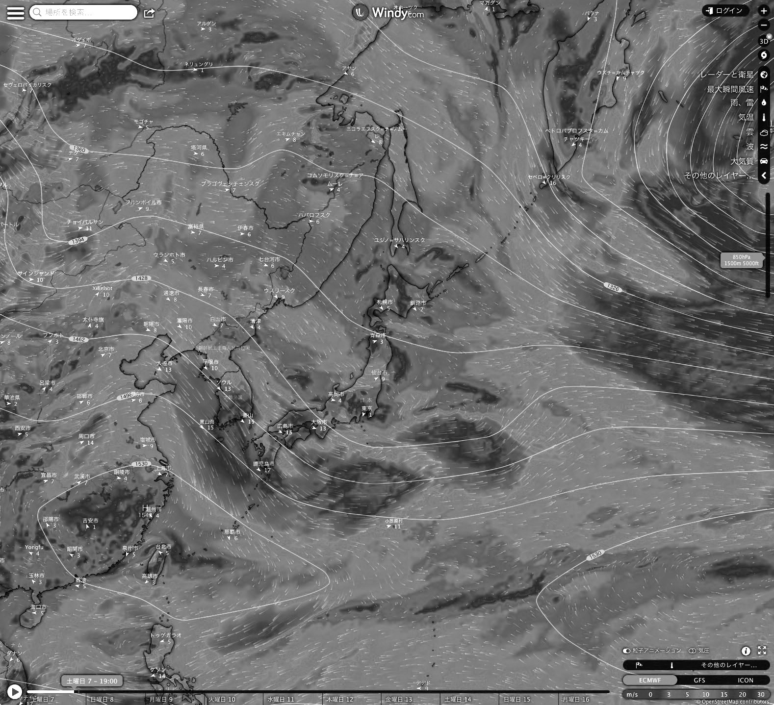 Windy.com の 2023-01-07 19:00 天気図を引用。