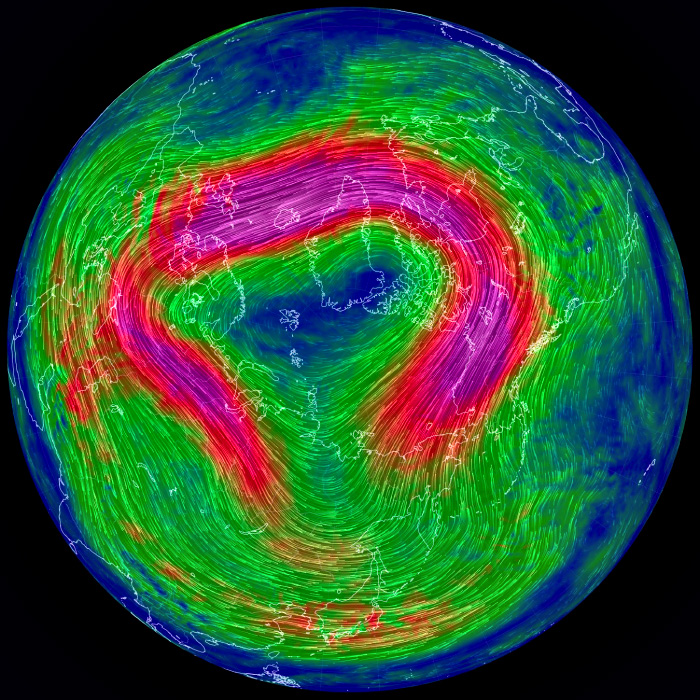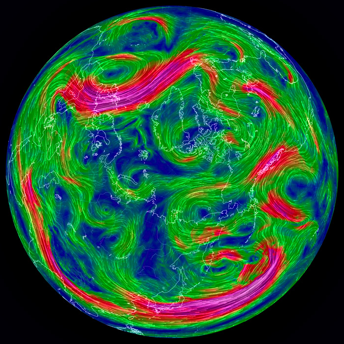 右列の天気図は,earth.nullschool.net から。
