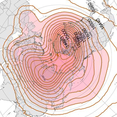 北半球高緯度圏鉛直対流の年間変化