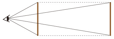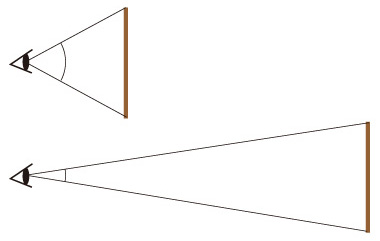 同じ物が,近くにあると大きく見え,遠くにあると小さく見える。