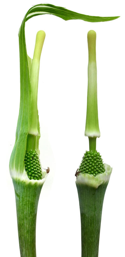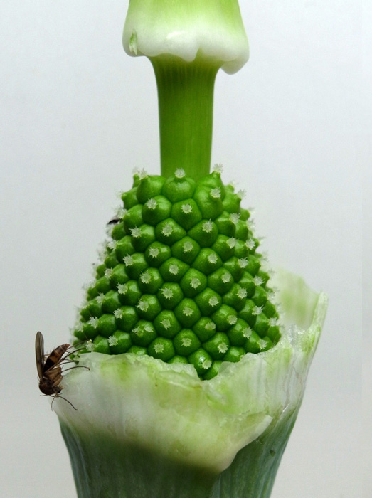 苞 (「仏炎苞」) を剥がして中を見る──雌花