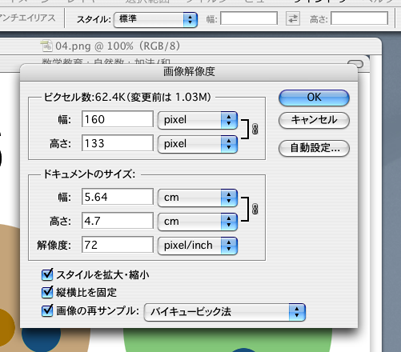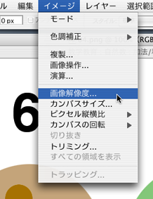Photoshop のバーメニューから,「イメージ」→「画像解像度...」